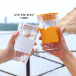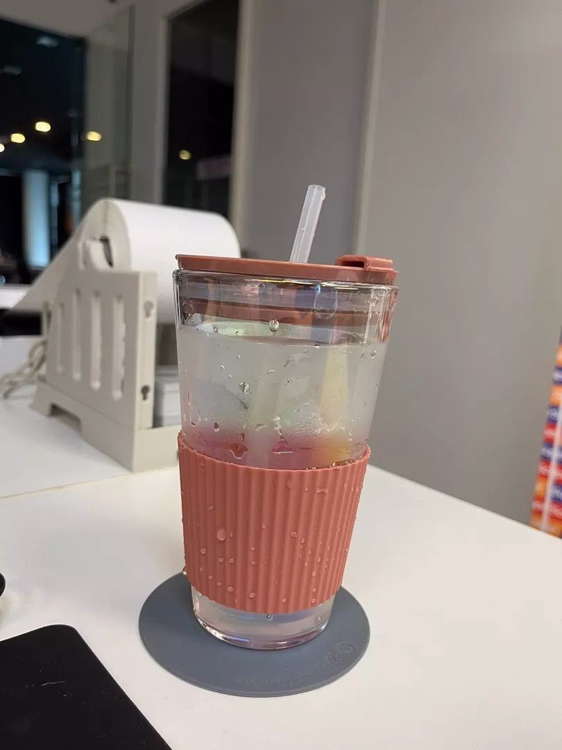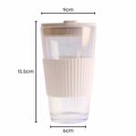 Thick and durable glass cup with a simple, cute design. Measures 15.5cm tall with a 9cm upper diameter and 450ml capacity. Comes with a pure black lid, and black Rubber sleeve. Perfect for water, juice, wine, tea, and more, suitable for home, cafes, and bars.