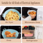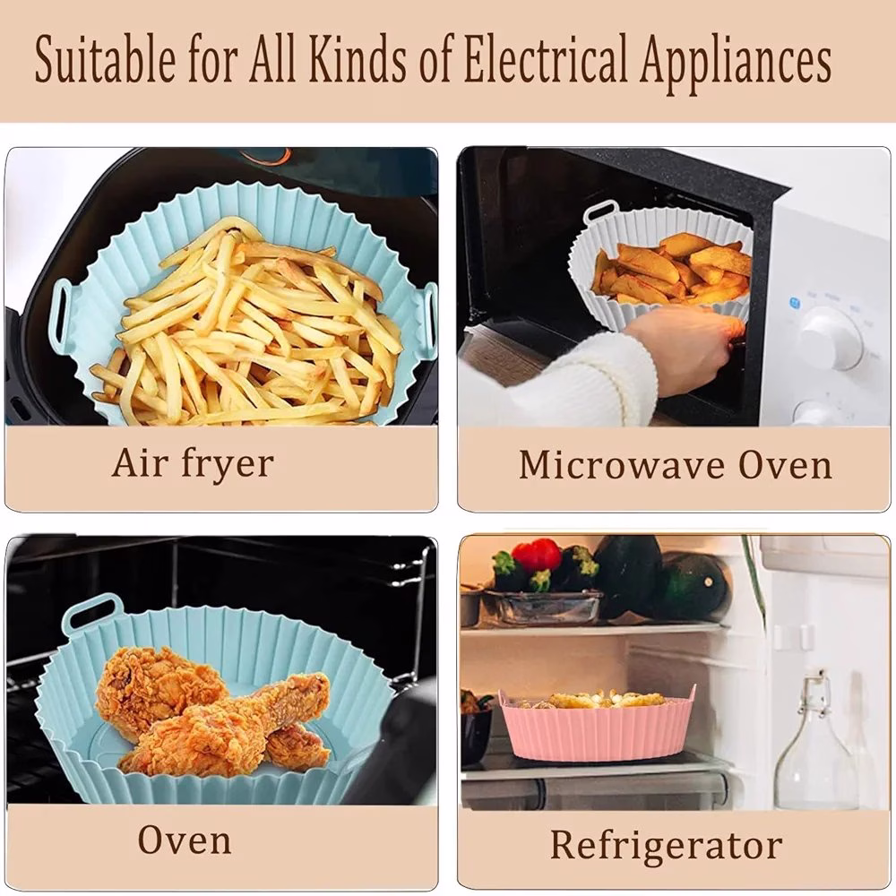 Upgrade your cooking experience with these Air Fryer Silicone Liners, meticulously crafted from premium food-grade silicone. These liners are sturdy, flexible, and durable, ensuring they withstand daily use without compromising safety. BPA-free and 100% food-safe, they offer a reliable solution for healthier cooking.