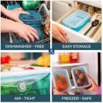 FREEZER, MICROWAVE and DISHWASHER-SAFE: the boxes helps prevent food from getting freezer burns. Now you can prepare meals, store them in the freezer for later consumption, take them out when you need them, heat it in the microwave, and stick the containers in the Dishwasher after. 1 container from start to finish!.
